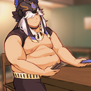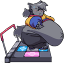*Kapi was busy for a moment as you walked in on him in the arcade, struggling to complete the last 15 seconds of a song on DDR, his titanic blubbery body wobbling and jiggling heavily with each labored movement. As the song finally concludes, the post-game screen revealing a rather modest score considering his former prowess, he wipes a few beads of sweat from his grey-furred brow, and waddles away from the poor abused dance pad, creaking from all his weight. He pants, tired... And sees you.*