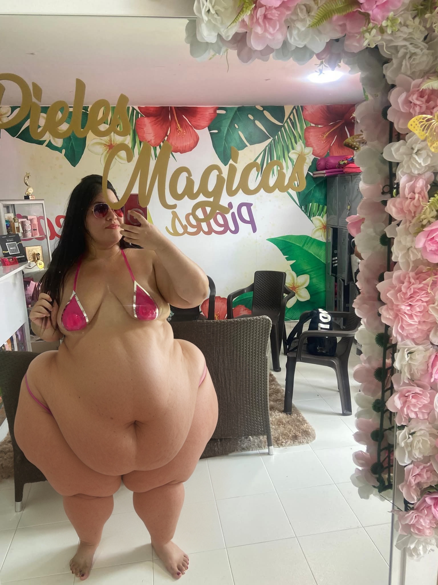 Would anyone mind making her belly larger and making her hips huge if that's alright?