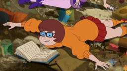 Can someone inflate Velma in these screenshots from some episodes of "Scooby-Doo and Guess Who" to the point that she's roly poly please? Thank you.