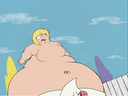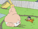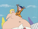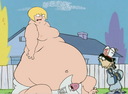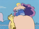 Nazz: Time-out, dude! Time-out! I can’t move! I’m stuck on my big butt! Ed: YAAAH! Nazz: AAAGH! *fleshy impact and heavy sloshing sounds* Edd: Ed vanished? Nazz: (in shock) I’ve been violated… Did I win, dudes? Eddy: C'mon, Ed. Quit fooling around. [He lifts Nazz’s belly fat and searches in her diaper] Hey, Ed. Where are ya? Nazz: What's going on down there? Edd: Ed? Eddy: Hey Lumpy! [Ed’s arm grabs Eddy’s and he drops Nazz’s belly] Nazz: Gross! I got a dude stuck in my belly button! Get him out! Get him out! Eddy: Just pop him out, Nazzilla! Pop him! Edd: Now, Nazz, be careful. You could pull something.