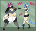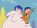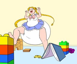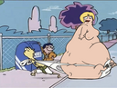 *heavy sloshing and squelching sounds* Eddy: I told you I’d make her big! Ed: She’s HUGE! Eddy: She’s a ton of fun! And this big loud-mouth is my ticket to Moolaville Sarah: (furious) Ed! Wait until Mom finds out you and your dumb friends turned me into a sumo wrestler! Ed: Sumo wrestlers are stars, Sarah! Don’t tell me Mom! Have pity!