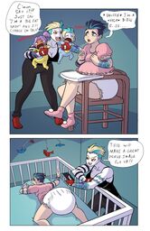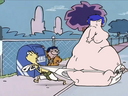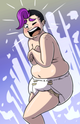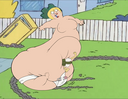 *Ed grunts and Marie’s diaper creaks* Marie: Watch the merchandise, bub! You’re stretching out my diaper! (She feels her butt hit the curb) Hey, why the heck did we stop? This don’t look like no Japan I’ve ever seen! *Ed lost his grip and Marie’s diaper hits her butt, causing her to jiggle and fart* Marie: Whoops!