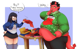 Male and female fatties are probably my favorite thing ever! I didn't realize how uncommon it was despite there being a bit of same sex fat art. Being bi is awesome and I respect the post that mentioned it being very underrated~