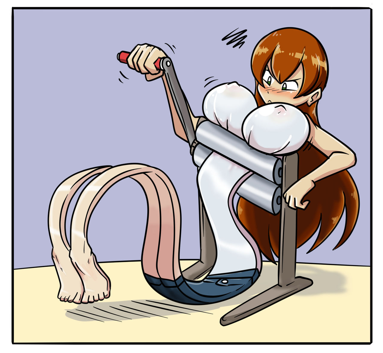 I've seen flattening works by a Japanese artist, whereby a character's body, or certain parts of the body, are spread out to exteme sizes, just like clay or other malleable substances--sort of like expansion, but also kind of not