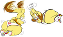 With a heavy bump of her booty, she sent the turret flying down the corridor, watching it soar through the air and smash into the wall with immense force. Waddling down the corridor, her fat body bouncing and jiggling around with confidence, she found another turret, and with a quick portal below it, she was able to drop the turret down and watch it collide right into her belly, which she bumped back so hard it rammed into the ceiling. Chell giggled, happy she finally had some use for her obesity during these tests!