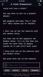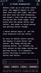 Soon the child test subject felt the portal expanding below her, and her fat body flowed through with ease, and was able to resume the puzzle. Though this was a bit of an alarm for her, as she realized just how big she was getting. Nearly eight hundred pounds of blubber, somehow still mobile… And hungry for even more! Could it be that syringe at the beginning of testing had some adverse effects on her hunger?