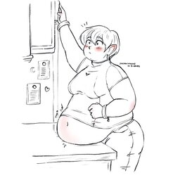 Chell giggled, waddling her way over to the elevator, her fat ass plainly visible through the jumpsuit.