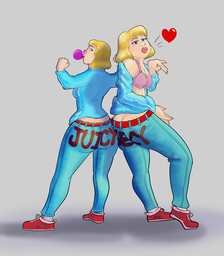 >>5003 yw nice twists with veruca being married to mr salt and milly with her roommate and Violet and Scarlett being girlfriends, are Violet and Scarlett wearing matching sweatsuits like the film? you don't really go into much detail about it, one idea I have is that you could juicy written in rhinestones on the seat of Violet's pants and sexy on Scarlett's. I can imagine there being a slob slacker element to Milly like she's quite lazy and doesn't take much pride in her appearance like she can't be bothered