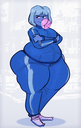 I want a story of blueberrification but the person has health issues and is extremely obese. >Be extremely obese lady with health issues, over 4 tons. >have to breath with the help of a machine >be constantly tipping on to deaths door but want to live >be giving an experimental method that could improve health but change life >already an immobile slob so what’s the worst could happen >get the experimental method from the “wonka factory”…it’s a simple piece of gum >chew it because “what the hell” >experience the best flavors of food tomato soup, roast beef, and blueberry pie. >flavor of pie get intense but I keep on chewing because it’s been the best meal I’ve had in a while. >doctor comes up to me and says “you look blue..” >laugh at the joke >doctor says “no I’m serious, look) pulls out mirror >see a reflection of my fat face…partially blue tinted >doctors report more areas of my body turning blue, they think I’m suffocating or something >entire body finally turns blue, then feel weird. Like my im digesting food after an eating contest. >I’m swelling >doctors clear the room and watch the 4 ton girl grow like balloon. >be enjoying it all the way, fat breasts grow rounder rather than saggier, belly get bigger and butt becomes fuller. >be over 10 feet as wires from nearby machines finally dislodge themselves from my body. >keep chewing gum, the flavor gets more intense >useless flabby arms slowly sink into body, till only hands remain, flap them uselessly for fun >get over 15 feet tall and feel weird, been hooked up to machines for most my life and I’m able to take a real breath without the help of a machine >be the best feeling ever >finally stop growing at 20 feet tall >be explained that I’m now half blueberry and won’t need medical machines to live.
