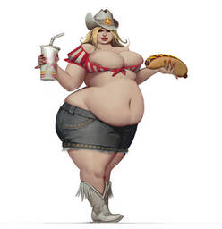 >>5284 August would have siblings, all in various states of obesity. At the very least, she'd have a fat, football-playing brother and a young sister who seems to be growing into a copy of August. August's mother would probably dress in cowboy-type clothes, to play up the whole Texas/American stereotype. The first pic in my previous post is how I imagine her. Fat, but not SSBBW territory (unlike her daughter). (As for the Mrs. Gloop in the story I'm currently writing, I kinda envisioned her looking like Eliza Allure) And yes, Alt-Veruca (Princess Pondicherry as a name maybe?) would start out as fat. I love your suggestions about her servants, and your suggestion of Desi Rose. That's honestly kind of how I imagined how this version of her would be. As for Chef Violet and Newscaster Milly, I don't know. I kind of imagine Chef Violet being black, maybe running a soul-food or barbeque chain? Alternatively, she could be French or Italian. She'd either be slightly plump, or quite fat (and proud of it, since it shows she's a good cook) I imagine Newscaster Milly wearing a professional-looking suit, which might be straining under her recent weight gains. The main puzzle for me is whether or not to make all the girls (save Charlette) BBWs from the get-go. I honestly might do this if I write out this 'sequel' to help make it more distinct than the edited Gendermorph fic. I think it would ultimately depend on what direction I'd want to take the story. The way I see, there would be two directions the 'sequel' story could go. The first would be turning it into a haram story, where Charlette ultimately wins the chocolate factory and four (or more) BBWs. This would play up the sex a lot more, having Charlette and the other women seducing each other over the course of the tour. In this direction, all the tour films (save Charlette) would start out at various stages of fat. They'd also probably start out without any partners, so it's less awkward when Charlette seduces them. The second approach would be to have Charlette only fall for one girl, possibly determined by audience choice. The others would find partners by the end however. I have been putting in ideas that you guys suggested. You've been a great help tbh, and I hope to continue writing more stories!