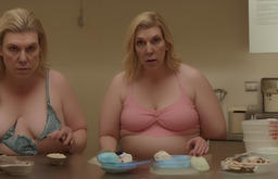 It was a rush. Excitement and giddiness. They were both laughing. Breathing heavily. Kim felt like she was about to burst- both physically and emotionally. God she had eaten so much, what had she been thinking? She would have to diet. She couldn't go on like this...