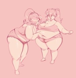 >>7427 Happy to hear it! As to your question, I'm not sure; topping out somewhere around 225 kg eventually, perhaps? She'll probably remain more in the 190-210 range in subsequent installments (whenever I'm struck with inspiration to put them out), though. As you can probably already tell, with these stories, I'm more interested in depicting fluffy slice-of-life feedism stuff in a pairing I'm attached to than I am in making the gain the main focus. So, don't expect to see massive growth installment-to-installment. That said, I have been toying the idea of eventually doing a flash-forward one-shot where she's large enough that her mobility is significantly restricted and/or a flashback series about the two of them working out that they share this kink interest and starting the journey to her current weight, but no promises.