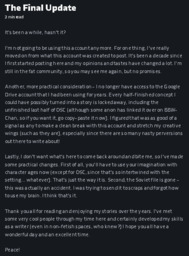 >>7528 If you have access is the Hope story not there? Maybe you can upload all that is there, but if its missing maybe you can reach out, get a final archive from him.