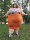 My first and current gf, she started around 400 something and is now around 550. We met in high school when I was a senior and she a junior. She was in one of my classes and just happened to be at the place I worked at during one weekend, I was checking out her items making small talk then I did some corny shit after asking her name like “Well, it was nice to meet you _.” Lwky I thought I blew it lmao and I was like fuck. But the next time we were in class she was staring me down and smiling at me. I was like fuck yeah then I looked back and smiled at her. I was fucking pumped, never had a gf before, I used to be an incel but I glowed up over the summer but I still had some confidence issues. After class was over I talked to her again expressing interest as did she and I got her instagram which only had like 30 followers. She’s got a pretty face and at the time her build was amazing where her body fat is distributed all over in one of the best ways, similar to a build like dankii but bigger, with her belly fat distributed more to her ass and legs so it was more even all around. We talked and she’d never had a bf before and we had a lot of other things in common. The talking stage was a lot easier than I thought it would be tbh. Then we went on a couple of dates where we kissed and made out, lasting a couple of weeks. At school we got glares and people thought I was weird but I didn’t gaf. We talked about everything in a short period of time as far as dates go, including sex, which she wanted. Random day after school she wanted to hang out at her place again and she had that tone and mood about her, I said yeah and we went ive to her place. She started to get nervous asf when we got to her room but was smiling and touching me, and I knew it was that time. I went in for a kiss and we started to make out. Couple minutes in and I started to take my shirt off to initiate but she was still hella nervous so I got real close and told her something like “I love you” and took her breasts out and started to kiss and caress them. I had gained her trust and she was lwky surprised even still but after a minute of that I started to kiss her mouth again. She’d never had sex before so in hindsight I can see why she was nervous then. After that I looked at her and she fell in love. She got up and took off her clothes then same for me and then we got into bed. We made out again for more, then we got to penetration missionary style. It was an odd experience for the both of us say the least, I would go in but she’d respond in some pain but take pleasure out of it, more pain than pleasure tbh, but after something like 3 minutes we both came. It was awkward and not what I had imagined in my head leading up to this point, and she probably thought the same thing too. I had to go easy on her as well since she was wincing in pain every time I thrust. After we cuddled and embraced and kissed some more. We grew closer together and the next few times we banged, we found less awkwardness and much more communication and joy. She started to take my girthy 8 incher all the way in and I made her moan so loud to the neighbors could hear lol. The more we fucked to better I was at pleasing her and her pleasing me. Cutting it short here a little but as the year went by she started ti gain more weight, started with the belly. Not anything super noticeable but I happened to catch it. We talked before about her weight earlier in the relationship and I said I liked big women, which she took very well. By the time I graduated she was around 450 if I had to guess, she didn’t weigh herself so whenever I guess I’m just winging but after being on here for a couple years at this point I was pretty good at guessing weight based on height, with her being 5’3. Last time we hung out and banged before I left for college we promised each other to keep a long distance relationship until she came to my college, and she said that she could drive down and visit me once in a while. I left for college and until she visited me I laid on the low and didn’t cheat. During the long distance relationship we sent nudes and she told she’d gained weight, I could tell too but I thought she’d gained less than she had when I actually saw her irl, but either I couldn’t tell based on the nudes or I was distracted by work and classes. Needless to say she came to visit me, but the first thing I’d noticed was that one of her friends was driving her. We hasn’t visited in a long time due to different things but we were finally going to see each other, and damn I saw her alright. She must’ve used food to cope for me being gone for her, since she had gained some weight. Her belly had gone from minimal to HUUGE, making her head tilt slightly up since she had to carry all the fat there. Her belly not only protruded out but was up to her tits, which pushed them out to the side slightly. Her belly went down past her fupa too. She’d also gained in my legs which were like tree trunks and her arms which were flabs of meat. Shortly before I saw her standing she had trouble getting out the car and I could see why. We looked at each other lovingly then I went in for a hug and a looong kiss. We embraced for what felt like an hour, then we stopped and I told her she looked amazing. She smiled and blushed, then we went up to my dorm room. Walking up there and taking the elevator I noticed that she had gained A LOT of weight in her back and some in her ass, her back like two big pads with a crevice that came down the middle. The sides of her back fat came down the side and was connected to her tits. From the back it was like looking at FatMissT. From the couple minutes between we were outside and in my room taking our clothes off we were kissing telling each other how muched we loved each other. When she climbed into my bed from the small stairs that led up to it, I had to help her a little, making her giggle and smile some more. When we got 
