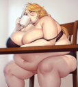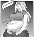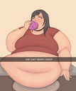 I was hoping that I'd see her blow up to massive proportions, however, now I'm wondering if she's hitting the point where the reality begins to set in. Right now she gets winded going up the stairs and when we have sex and she's burst out of all her clothes but that's the only real consequence. She's pretty smart and I'm sure she realizes that if she continues down this path she'll soon hit the extreme side of obesity and that's when the actual real issues come in.