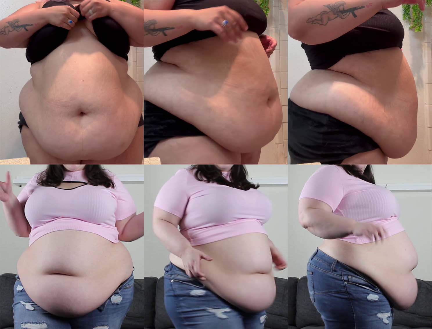 Good thread idea and love the wording. I'm not sure I have a favourite variety, but most of what I looked through for screenshots were double bellies. Screenshots are I think some of the best (in my opinion for shape and size). Visually I typically prefer an hourglass figure with the belly tapering towards the middle (so it doesn't cover the outer portion of hips and thighs). For double bellies I prefer the lower portion to have more volume than the upper portion. I think Passion has one of the nicest looking because of her smooth skin, nice shape and size. I love holding the bottom part of the apron of my wife and swinging it back and forth in my hand. She is almost 400lb and is built similar to BBBXXL (pear shape with large single belly). It just feels weighty but soft. I also think it is fascinating when the woman's stomach can touch the ground while sitting on a chair or couch. I've only seen this with Candy Godiva and Vanilla Hippo.