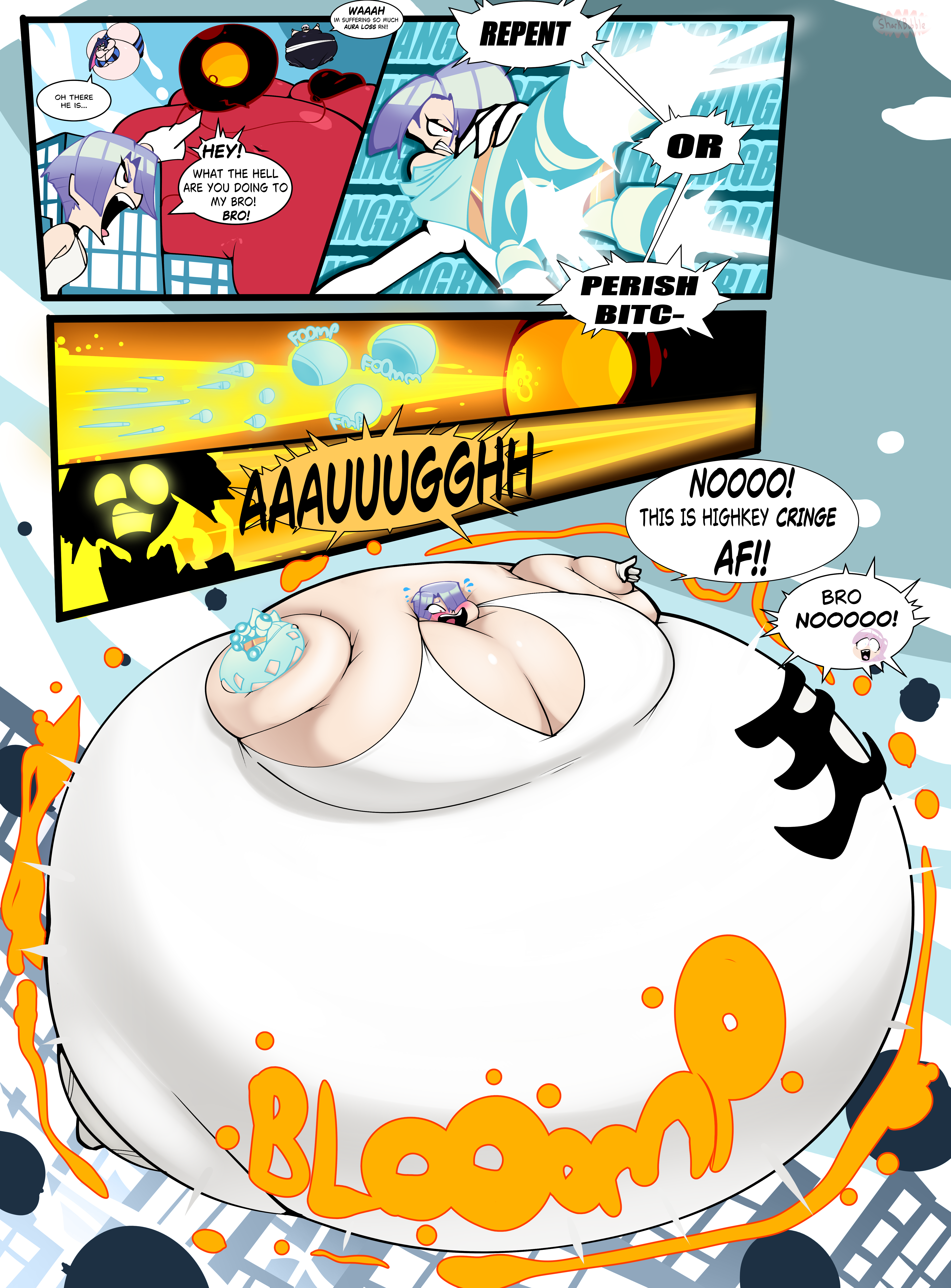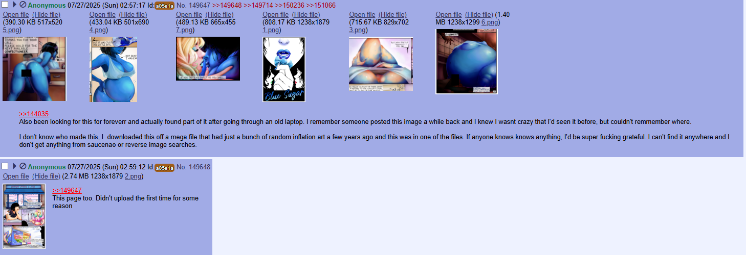 Both Male and Female are ok and any kind of expansion as well (Full body, belly, etc) As long are artists or thier ocs (Just add spoilers for explicit expansion or content just in case) Any piece of a artists drawing themselfs or other artists drawing other artists inflated is welcome, you can even add yours if you are into this