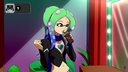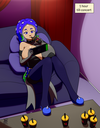 Miss Wonka waited beneath a single red spotlight, top hat tilted, violet velvet coat brushing the floor.