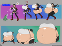 >>156301 Kinda depends on the art, but- -Don't be afraid to use layers? That one took a lot, but labeling helps, and you can always merge them later if need be. -Use what you've already colored to make masks for what you need to color. Saves time and effort. -Play with blend modes. Even if you know what a blend does, sometimes it'll still surprise you.