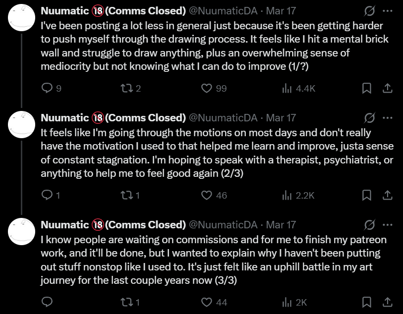 >>165192 ...riiiight. This is going to be put along with the "Neverwere is part of the cartel" rumor I heard. Still no proof of anything anywhere. >>165158 "the worst people you know" Just an artist who does his own thing feeling pressured by morons and art block. This is the only thing I see happen every fucking time.