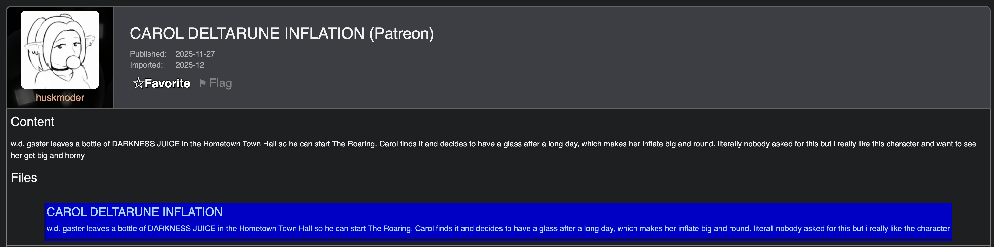 Okay, I'm tired of asking for it all the time. Could someone please, for the love of God, update the Kemono browser124? Since report my post has already gotten ahead of the current state of Kemono again. (it's happened once before, and let's just say I'm tired of the Kemono Party pages being out of date). Here's a screenshot of the current status of Kemono and Browser's DeviantArt so you can see how far ahead they are on DeviantArt. The red Xs mean they are available on Browser's Kemono. I'm asking for this for two reasons in particular: