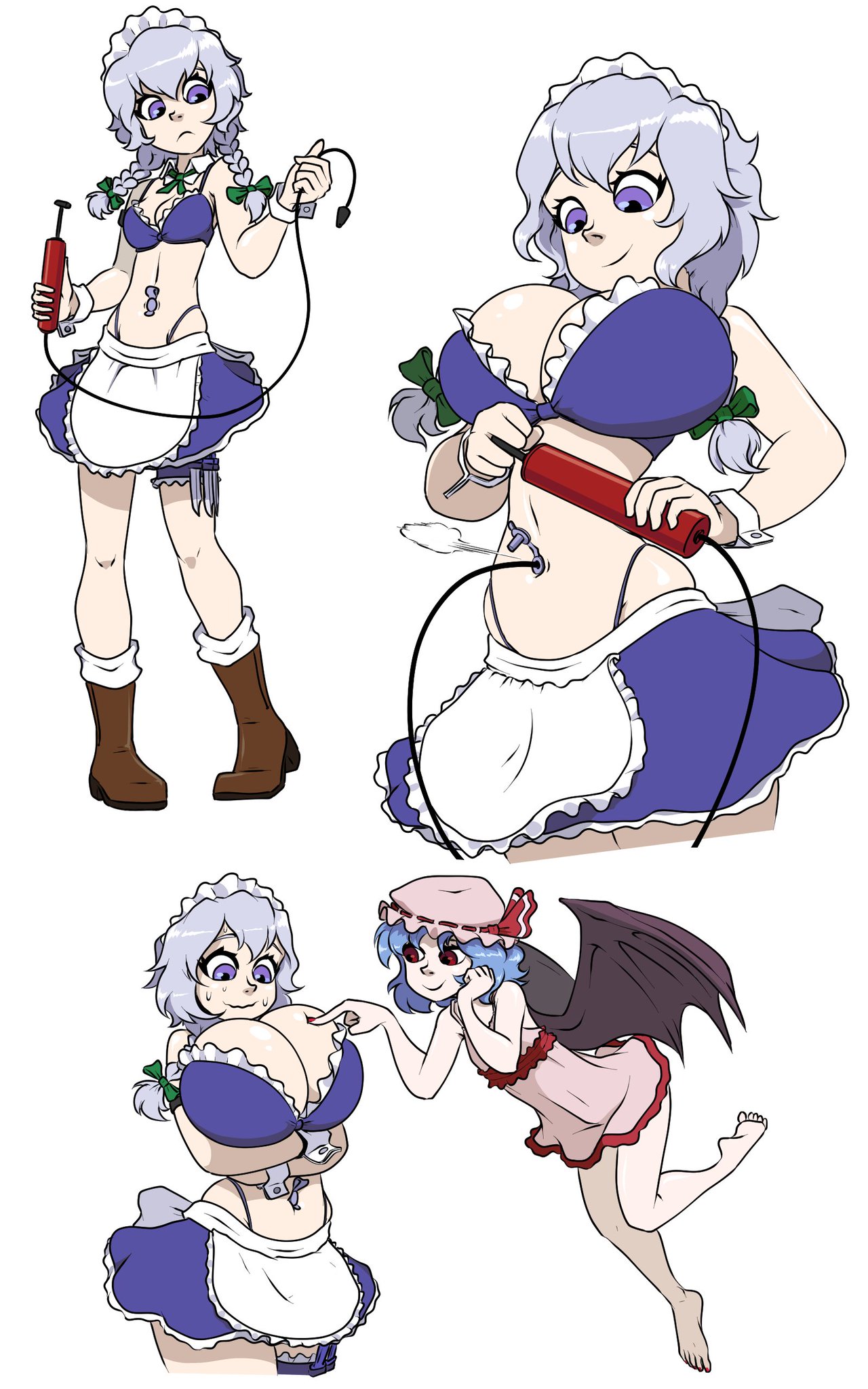 There's a short film called wedding cake by magnetfilms on YouTube which feature's a cake topper couple that can manipulate their surroundings with frosting. In one part the husband is watching a ad with big boobs and later on trying to fix his wife's stain he ends up using frosting to make her huge tits. Plain and simple. Nothing huge outside her tit size Although if you asked me I'd might have preferred the shop keep filling her up with the piping bag/pastry frosting cone because why not a direct mouth or ass full like that cat girl video with the cream puff machine would be very lewd and a fun inflation breast or blimp (there's a fanart idea for you if anyone gets the vibe to make her big and round) Video link https://youtu.be/ztpcMUH44jk?feature=shared More can be found in the TV scenes thread as I'll be adding it there too