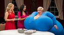 The Violet Transformation Part 1: The Mysterious Cake Valentina was a free-spirited young woman with an infectious laugh, with long, distinctive purple hair that reflected her vibrant personality. Unlike other girls, she always embraced the unusual and the magical. One night, at a college party, a friend offered her a slice of a cake that she claimed was "a new kind of blueberry." Valentina, always willing to try new things, gladly accepted. The cake was delicious, but after a few minutes, Valentina felt a strange bubbling in her stomach and a bloated feeling that wasn't just from overeating. She looked down at her hands and arms, which seemed bigger. Her belly, already prominent, swelled like a balloon, straining her T-shirt and pants to the limit. Valentina: (With a mixture of panic and astonishment, on a phone call with her friend) "Sofia! I don't know what's going on!" I ate the cake and my belly... my belly is... MHMMPMPMPMHHMMM!...! Growing! I can barely breathe! A loud, immensely powerful burp escaped her lips, and her cheeks turned red with embarrassment. The people around her stared at her with a mixture of curiosity and amazement. Valentina: (Voice shaking, almost sobbing) "Sofia, I'm really sorry! I just can't... Nwooo! UUGHHH!... control it! Every time I... Gaaah!... burp, I get bigger!" Valentina's friend, a slender blonde, remained silent on the other end of the phone. In the background of the party, a blonde in a red dress and a brunette in a pink dress watched the protagonist, a blonde-haired woman, in a similar state, her round, blueish body, like a giant blueberry. The scene was chaotic, and Valentina felt trapped in a mess she didn't understand. Valentina: (With a groan of despair, holding her colossal abdomen with both hands) "Oh, no! I'm still growing! I don't fit on the couch anymore! I'm... MPAMFPSDFMPS!... too big for the party!" Part 2: The Mountain Giantess Valentina's growth didn't stop. Her body swelled at an alarming rate, and each spasm in her abdomen caused her body to expand further. Her terrified friends left her alone in the party room, which was now a prison. The house, which had once seemed large, became smaller around her. Valentina: (Screaming, her voice rattling the furniture) "Sofia, I'm stuck! My head is... Uhghhghhghhhhh...! touching the ceiling! And my butt... my butt is bursting through the couch!" I need... I need... BUURRPPP!.... a bigger place! Another spasm shook her, and a monumental belch escaped her mouth, a sound of sheer force that caused the house's windows to shatter. The house couldn't bear the pressure any longer. The roof, the walls, everything split, cracked, and crumbled around her. Valentina found herself outdoors, sitting on the rubble of what had been her friend's house. Her dress was gone, and her body was a gigantic mass of flesh, her hips and belly of epic proportions. She sat on what had been a small cottage, her immense buttocks crunching the foundation, feeling the earth tremble beneath her weight. The moon shone in the sky, and the night landscape was a canvas at her feet. She felt incredibly small, despite her size. Valentina: (In a voice that sounded like thunder from miles away) "Sofia, ... Mmmmm Bwwuuaarrpp... urp... ughhh...!... I can't... I can't stop! The burp won't stop and... and I keep growing!" Sofia's laughter on the phone turned into a series of panicked sobs. Valentina was alone, a giant in the middle of the forest, with the moon as the only witness to her transformation. Her body continued to grow, and the feeling of fullness turned into one of immense pressure. Valentina: (With a groan, holding her belly with both hands) "Oh my God! What did I do! This... Ooooh... I... oooooffff...!... is the worst moment of my life!" Part 3: The Violet Sphere The night wore on, and Valentina's growth became more and more intense. The feeling of pressure on her body was overwhelming, and with each burp, her body rounded even more. Her arms and legs grew shorter, and her torso expanded into a near-perfect sphere. The world grew smaller around her. Valentina, the giant who had once sat in her house, was now a colossal sphere floating in the air. Her pajama pants and T-shirt were no more, only a couple of shreds of fabric that barely covered her shoulders. Gravity seemed to have no effect on her, and her spherical body remained in the sky, like a new moon. She looked down at her hands, which were now the size of trees. She looked down at herself, a round, gigantic body, with her small face at the center. She no longer felt fear. but a strange sense of peace. She no longer apologized for the belches, which were now a sound of pure power, a bellow that echoed through the valley. Valentina: (In a voice that sounded like distant thunder, speaking to herself) "I guess this is what 'fullness' means. It's... it's crazy! But... huuurkkk!... I feel... I feel so happy!" A final spasm shook her, and the belch was the biggest of all. The sound was so powerful that the mountains shook, and the trees fell to the ground. Valentina, now a giant, perfect sphere, let out one last moan of satisfaction. Her eyes, once filled with panic, now held a look of acceptance. She had become a delicious mess, a flesh moon in the night sky. Valentina: (In a whisper that seemed to whisper throughout the valley) "Oh, God!" I guess... HICK...!... the cake worked! AHHAHHAAHAA!