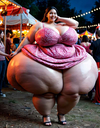 The Purple Fury Part 1: The Night of Infinite Happiness Sandra was a woman with a kind heart and a figure that was already of considerable proportions, but she loved life, especially summer festivals. Her hair was long and blonde, and her eyes shone with contagious joy. That night, at a beach festival, she was wearing a T-shirt that barely contained her vast bust and shorts that disappeared below her immense hips. She was holding a handful of balloons, and her smile was as big as her belly. She was walking along the beach, laughing and chatting with her boyfriend, Leo, a boy with brown hair and kind eyes who looked at her with genuine adoration. Leo: (With a smile on his face) "Look, Sandra! That food stand! They say they have 'the snack of infinite happiness'!" Sandra: (With a laugh that made her body tremble) "Oh, Leo, how silly you are! Infinite happiness can't be bought at a food stand! But it sure sounds delicious!" A mysterious-looking old vendor, wearing a straw hat and an enigmatic smile, offered them a sample. It was a small, shiny purple ball with an intoxicating aroma. Vendor: (In a raspy voice) "Try it, girl. It promises infinite happiness. And it's free." Sandra, always trusting, ate it in one bite. It was the most delicious flavor she had ever tasted, and a wave of warmth and joy spread through her body. She felt incredible, as if she were floating. Her already large body began to expand. Her vast hips widened a little more, her belly became a little rounder. But, to her surprise, she didn't feel fear, but immense happiness, hence her smile. Sandra: (With a laugh that echoed throughout the festival, her voice filled with joy) "Leo! How... how incredible! I feel so good! And I feel like I'm... BUURRPPP!... growing! But I don't mind! How happy I am!" Sandra's burp was loud, but she wasn't embarrassed. Her body continued to grow, her balloons popped, and her figure became even more imposing in the crowd. Her blonde hair slowly turned a shade of purple, as if reacting to the candy's energy. Leo: (With a mixture of amazement and concern) "Sandra! Your hair! And your body! It's... MHMMPMPMPMHHMMM!... inflating! Are you okay?" Sandra: (With a laugh of pure joy) "I've never felt better, Leo! I feel so... so huge! Aahhaaahahaa!" Part 2: The Purple Giantess The candy's endless happiness turned into endless growth. Sandra, already large, became a giant. The festival below her looked like a diorama. Her legs, thighs, and hips became colossal masses, and her belly was a gigantic sphere. People ran around in panic, but she, in her ecstasy, didn't notice them. Sandra: (Screaming with joy, her voice echoing across the beach) "Look, Leo! I'm... MPAMFPSDFMPS!... a giant! The world is so small! Isn't it incredible!" Her body continued to expand, the feeling of happiness grew more intense, and her body grew larger. The sun was setting, and the sky turned a shade of purple, reflecting her new hair color. Her body continued to expand, her belly and hips were of a magnitude that made buildings look like toys. Leo: (In a panicked voice, on the phone) "Sandra! Your house! You're... you're sitting on it! You're crushing the roof!" Sandra looked down and saw herself sitting on a small cottage, which looked like a doll beneath her vast frame. Her purple hair moved in the breeze, and her immense hips and thighs spilled over the walls. But the ecstasy of the sweet treat still kept her in a state of euphoria. Sandra: (Laughing, in a voice like thunder) "Oh, God! I'm sorry! I didn't see it! But... Ooooh... I... oooooffff...!... it's fun! Look at me, Leo! I'm the queen of the world!" Part 3: The Explosive Ending But the "infinite happiness" came at a price. As her body grew, the internal pressure increased. The ecstasy faded, replaced by excruciating pain. Her body, which had become a sphere, looked like a purple moon in the night sky. Her arms and legs had retracted, and her body was a mass of flesh that was endlessly expanding. Sandra: (Screaming in panic and pain, her voice a bellow of despair) "Leo! This isn't happiness! It's... it's pain! I feel like I'm going to... Uhghhghhghhhhh...!... explode! I can't... I can't stop!" Sandra's burp was the loudest of all, a sound of sheer force that shook the earth. The sky clouded over, and the pressure on her body became overwhelming. Tears spilled from her eyes, and her body turned a darker shade of purple. Sandra: (Voice breaking, almost sobbing) "Leo! I love you! I'm really sorry!" Please... huuurkkk!... forgive me! For being so... Nwooo! UUGHHH...!... stupid! Sandra's final belch was a prolonged, agonizing bellow, a mixture of terror and madness. Her skin, which had been stretched beyond belief, began to crack. Sandra: (With hysterical laughter and a final scream of pain) "I don't want... HIC...!... for it to be the end! I want... Aahhaaahahaa!... more happiness!" With a thunderous KABOOOOOOOM!, Sandra's body exploded in a cloud of purple dust and a shower of glitter. Her laughter and scream of terror mingled into a final sound that echoed across the beach. The crater it left behind was a reminder that endless happiness sometimes comes at a price, and in Sandra's case, it was an explosive one.