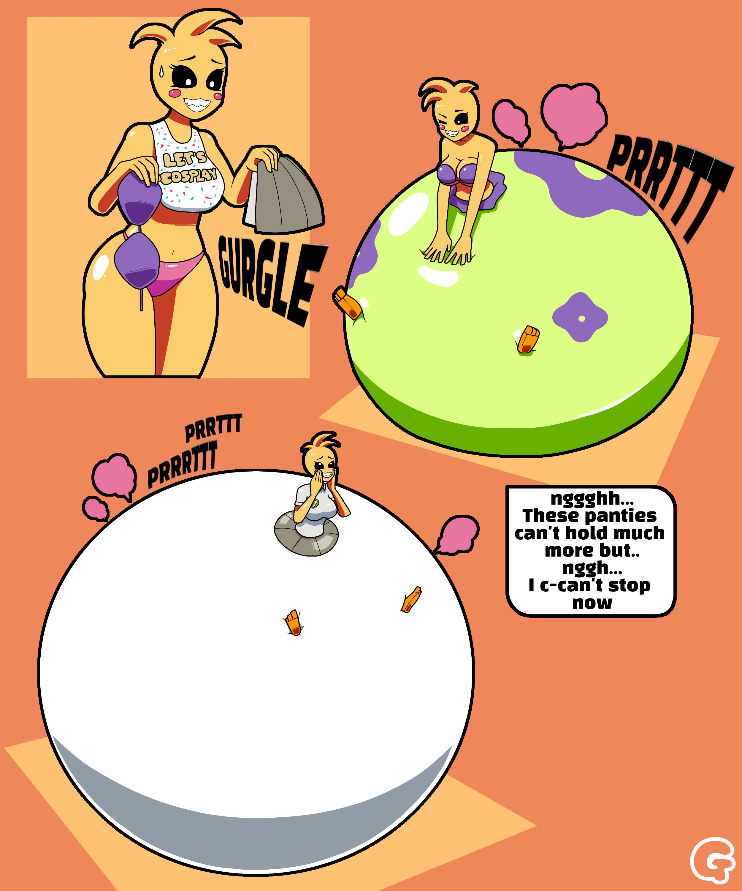 Don't know if the first one would count as clothing inflation, but the panties do get big and round, so it counts in my book.