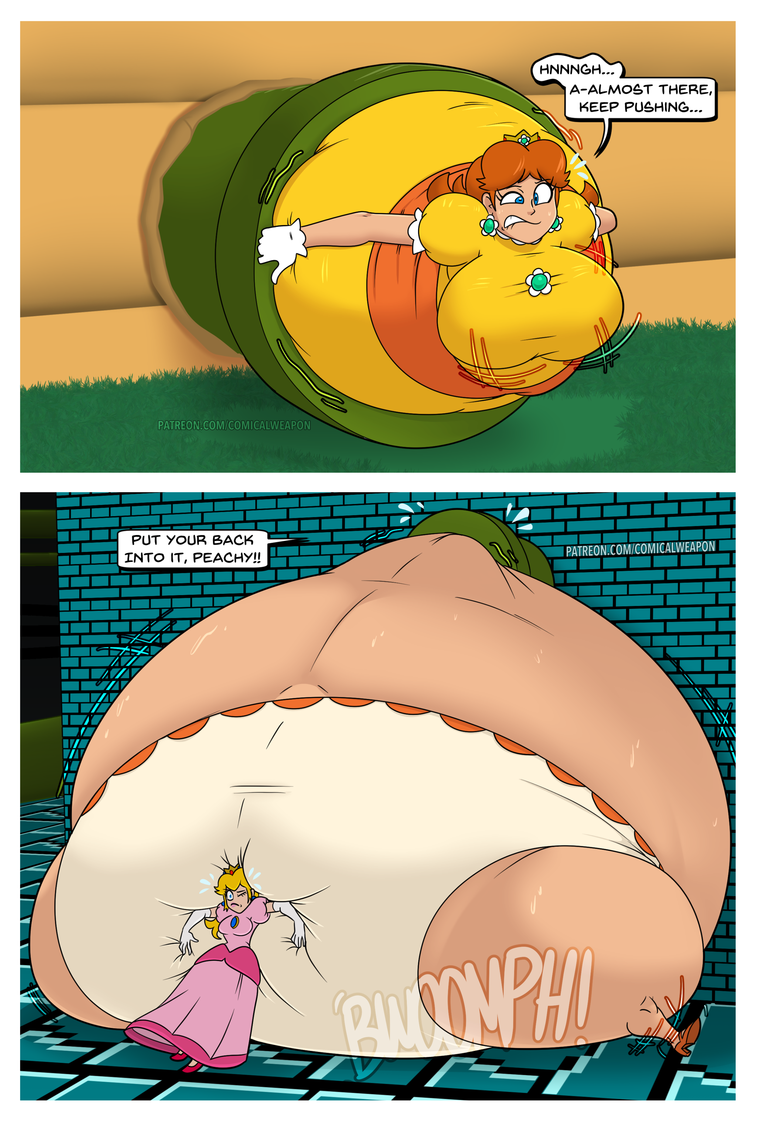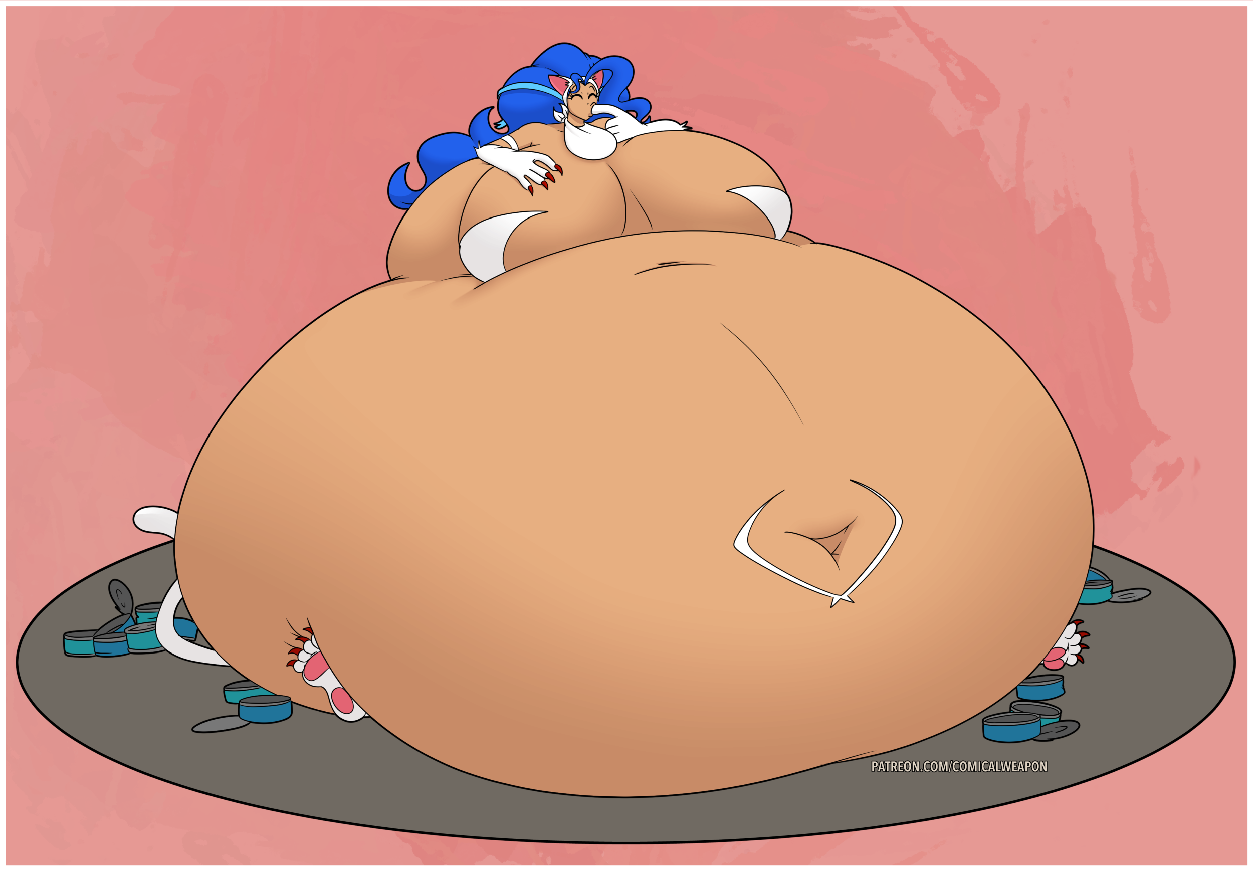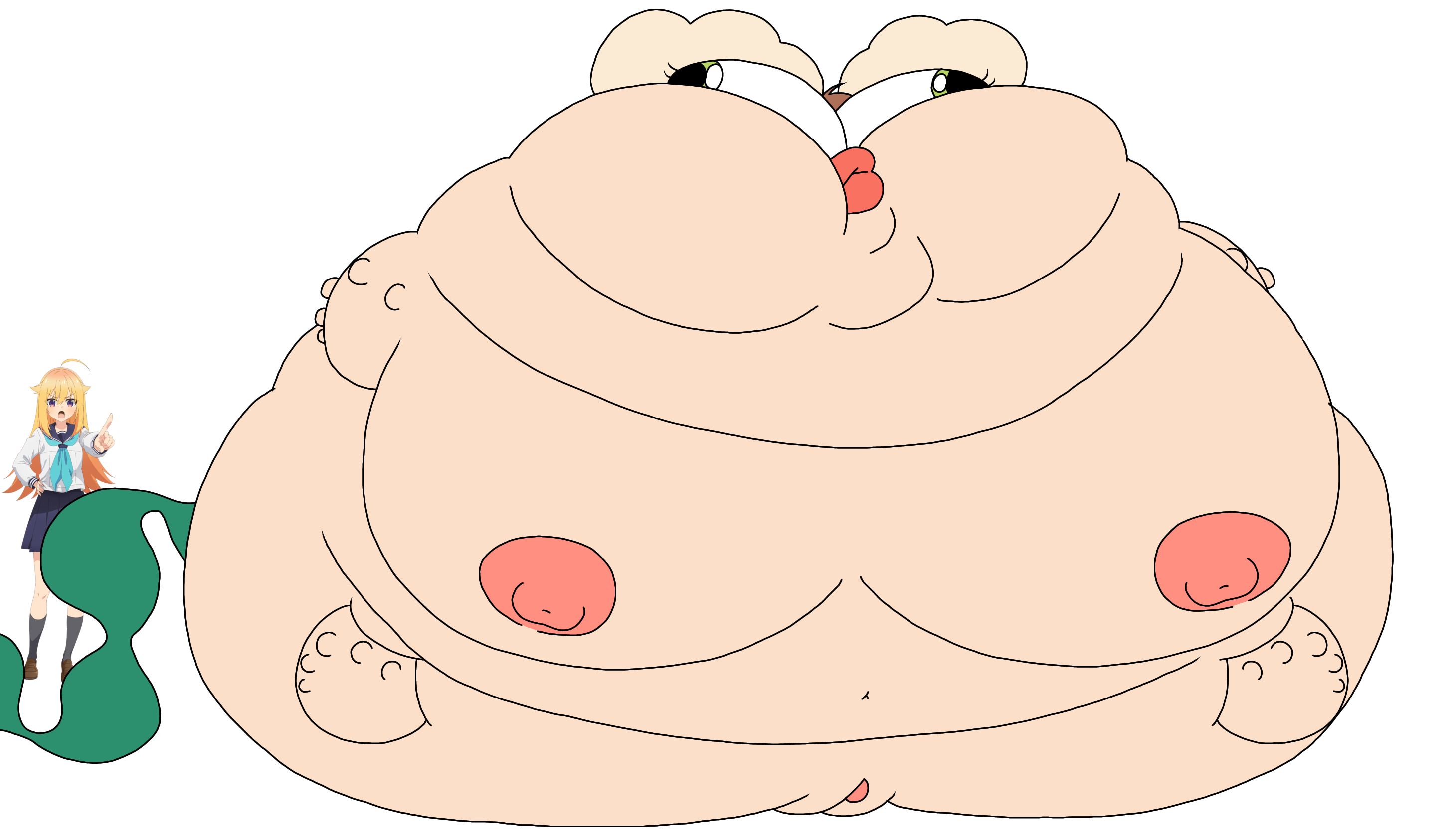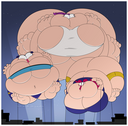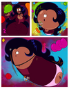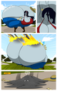 Revy attends a parade, but she's super bored. while she's standing there sulking, she spots the evil hands up to something. she follows them into a warehouse where they slam the door shut and zap her with a ray that causes her to inflate into a smiling parade blimp. Then the hands tie ropes to her inflated hands and feet and float her out the top of the warehouse, where she becomes part of the parade herself. The crowd cheers as her blimped body is paraded in front of everyone, and her expression in the thought bubble shows she's not only embarrassed, but more than a little annoyed at her predicament.