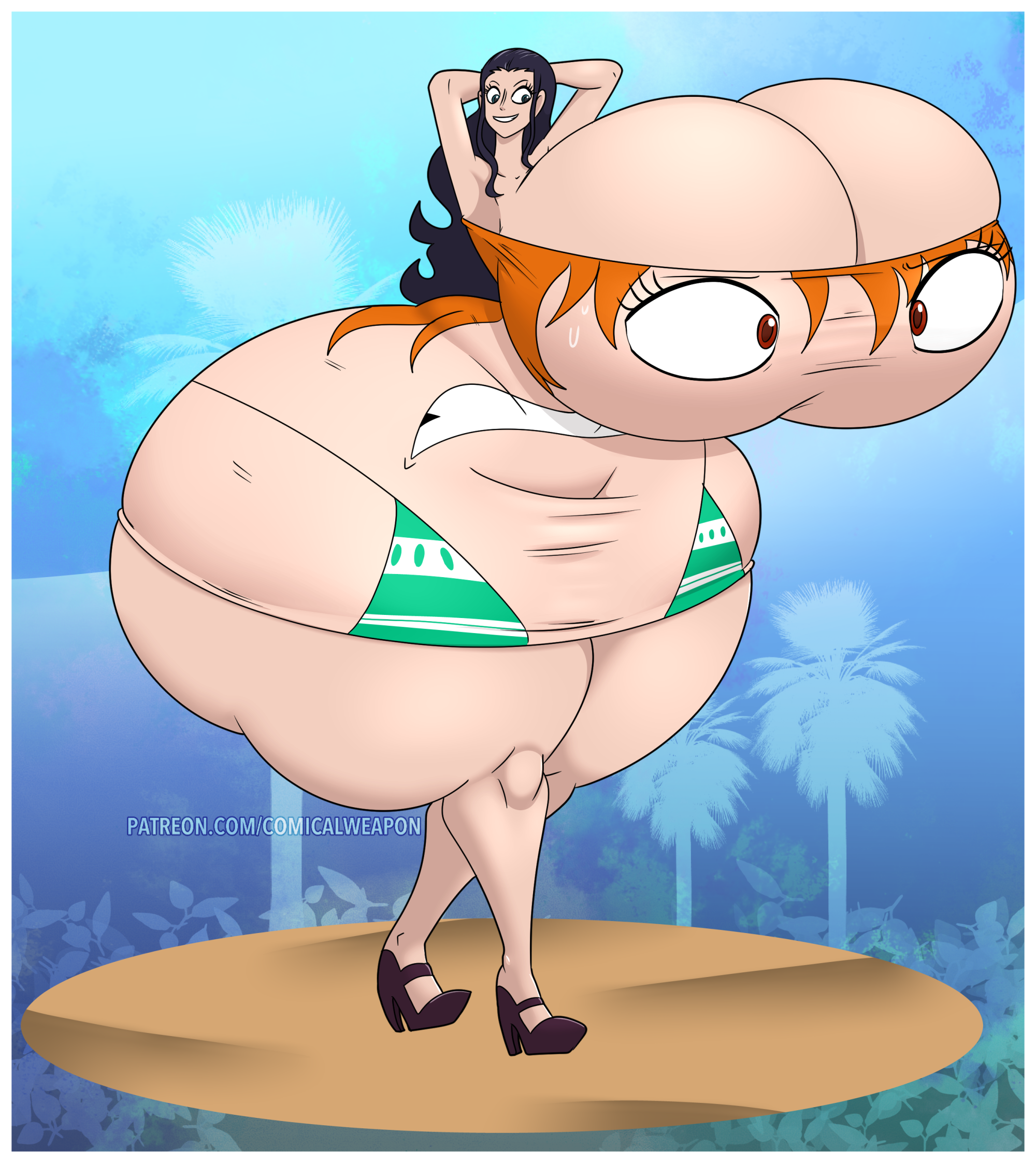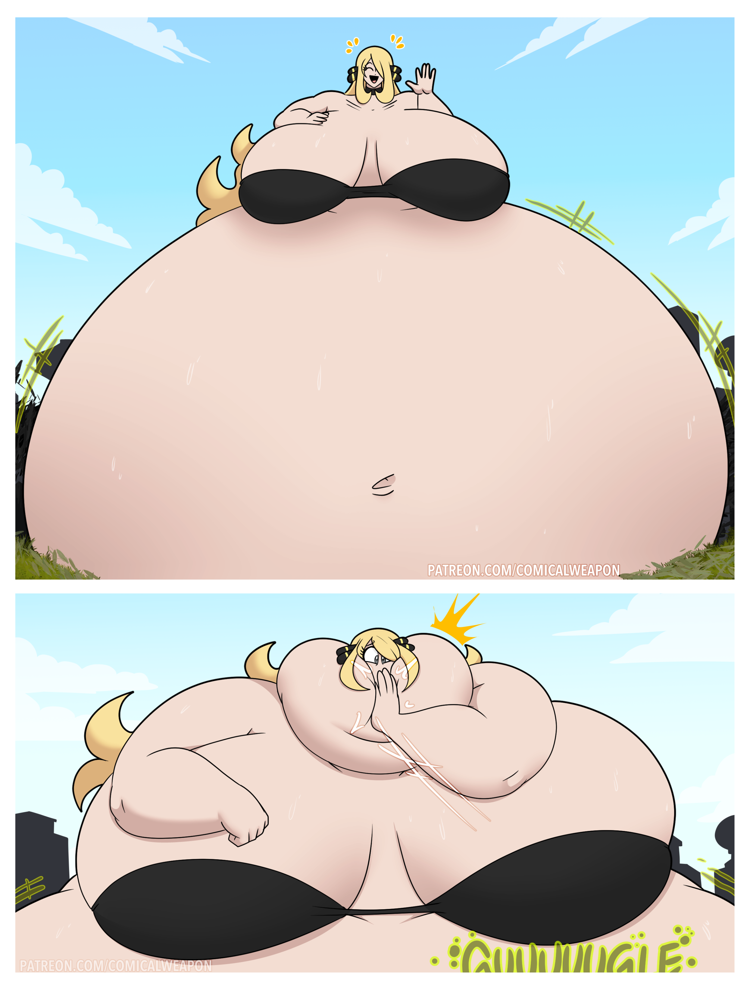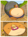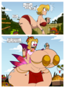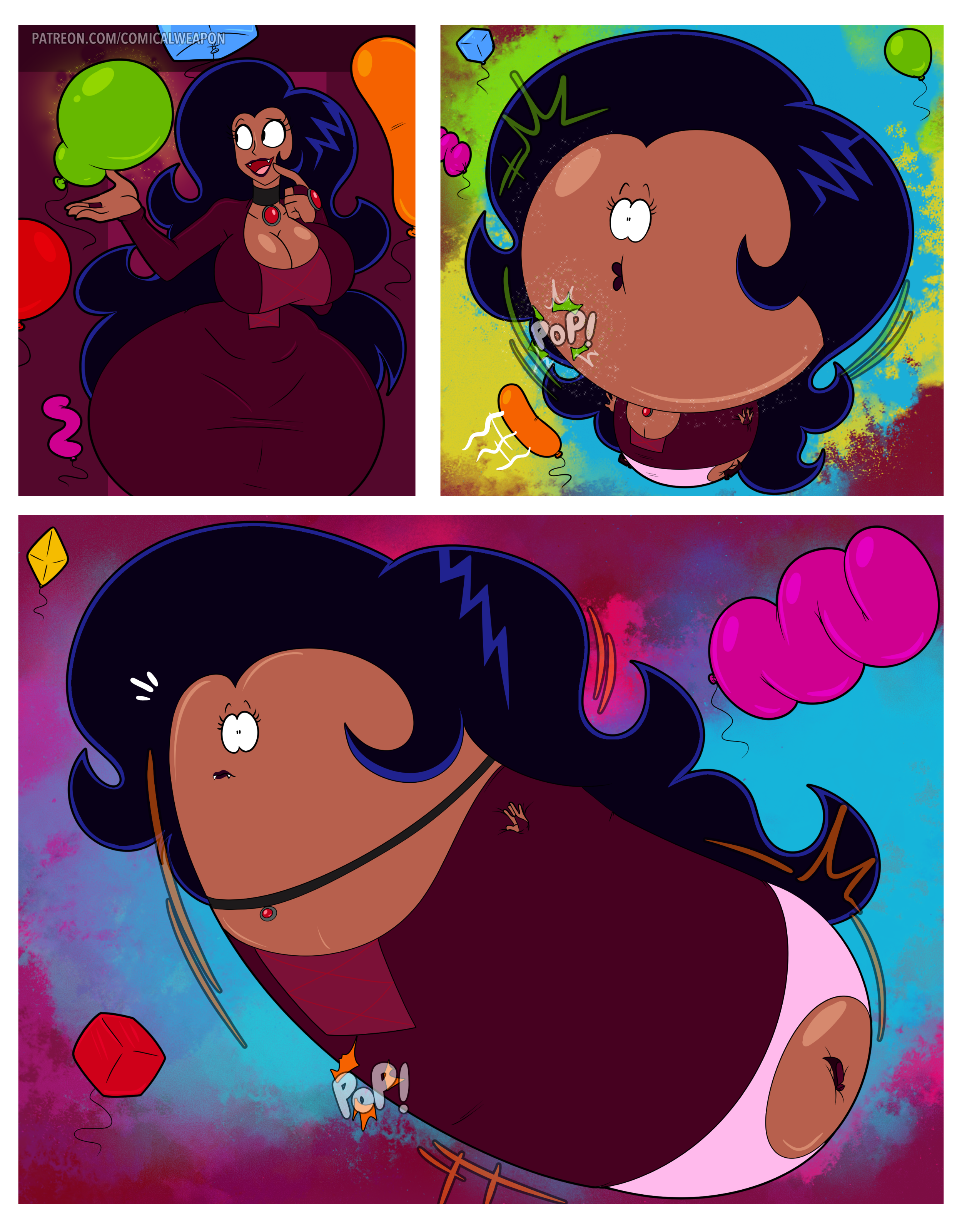 After her first fight with Roberta. Revy decides it's time to build some more muscle. So she goes to a gym and she starts lifting weights but nothing is working until she sees a unique piece of work equipment. She remembers seeing it tiny toon adventures it was the same machine that inflated hamton with muscles so Revy puts on an evil grin and starts using. Once she buffed up she imagines the look on Robertas face when she sees her. Unfortunately Revy Started to get more inflated she looks down and Sees Roberta Pumping her up more until she looks exactly like hamton when buster and plucky inflated him. As Revy Floats Roberta pulls out a Pin and pops her Revy is Back to normal and Dizzy as Roberta Laughs At he