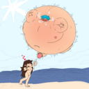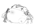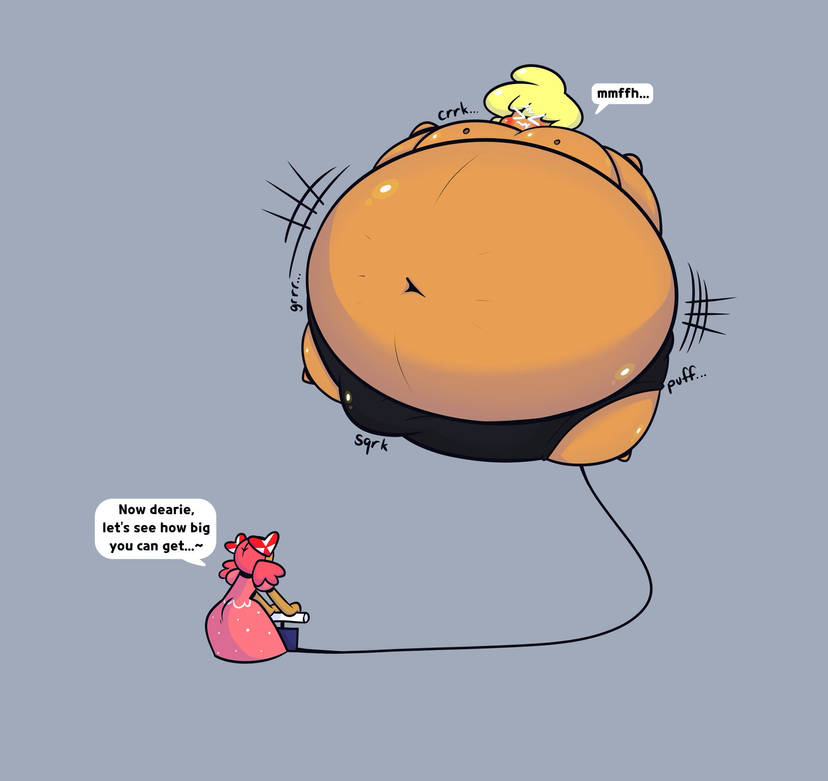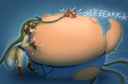 >Belly rounding and puffing like a yoga ball, growing more and more massive with each second
