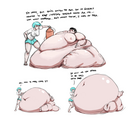 >I glanced over at Matt. He was laying on what was once his back, so his huge, bloated cock was on display. It was so tight, and each one of my blimped up friends had came at least five times since they blew up. I could see every inch of his turgid underside, from his swollen asshole to his fat, useless feet.
