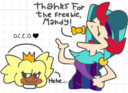 >"You know, I was totally ready to have a train ran on me, but I wanted to make sure you all weren't lying when you said you had experience" She chuckled to herself, "And since I know you nerds were wondering why I'm not a huge, fat blimp like all are." She grabbed my foot and rolled me down to her eye level, "This stuff only blows up virgins."