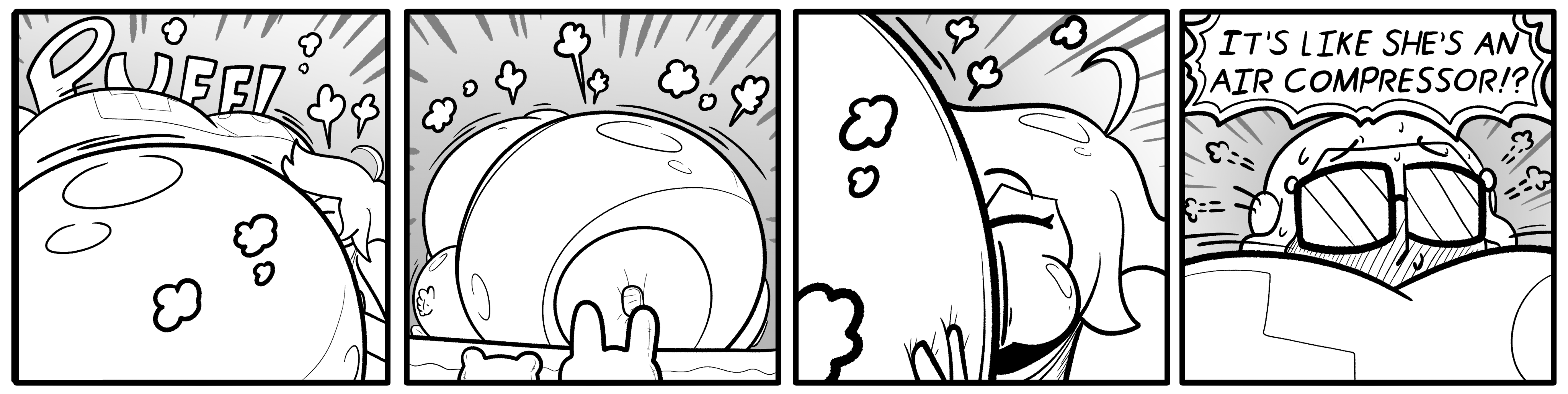 I really don't get what people love about this guy. All his sequences are identical trite 7-slide inflate to pop events. There's no environments, two slides are wasted on the aftermath, the shapes are always the same, & the characters aren't even sexy. What's worse is the fact that he never takes any risks. Never reveals a crotch let alone a pussy. It's not sexy at all. It's goofy, clumsy, predictable overpriced cartoon shit! Can't believe people pay for this tbh. Each to their own I guess!