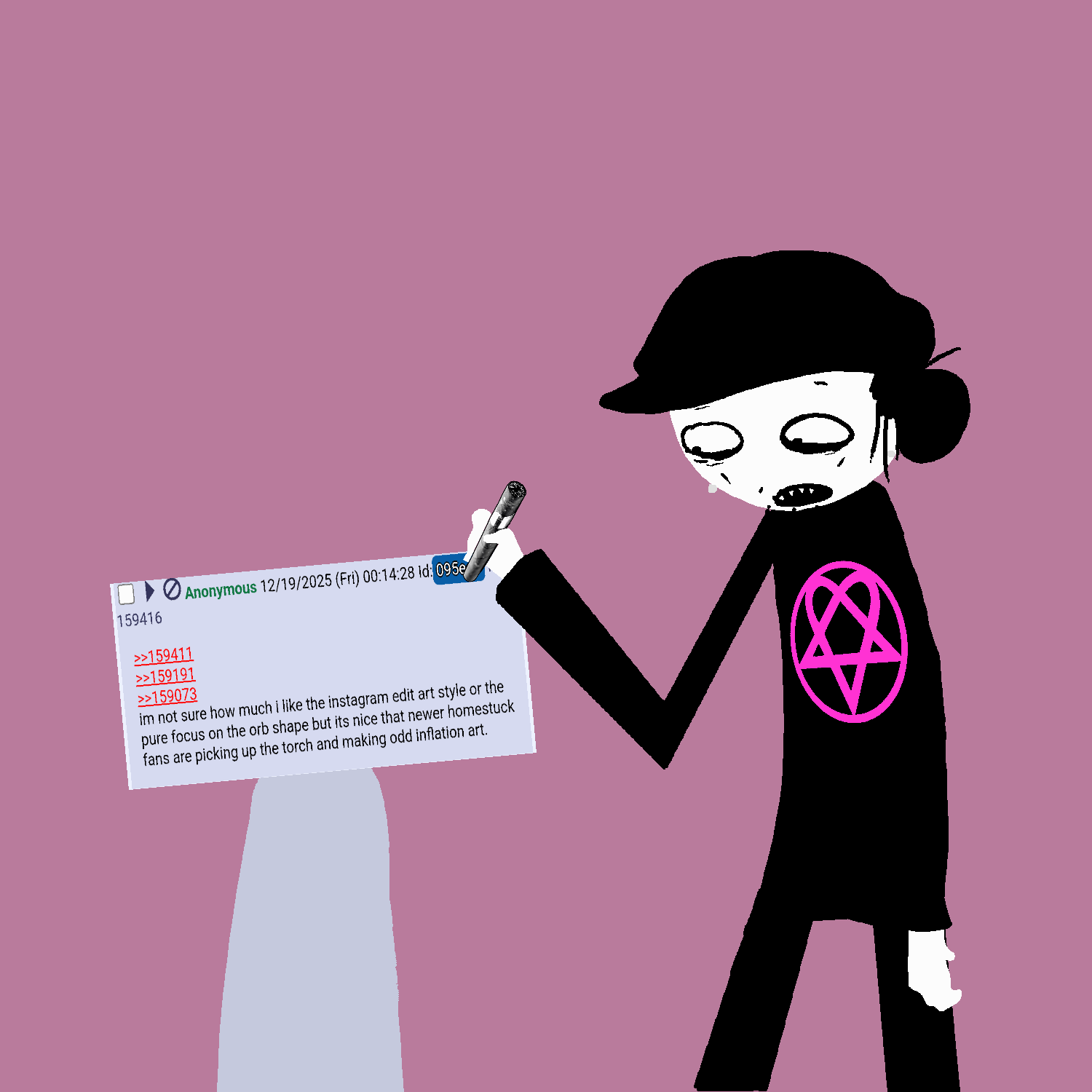 And like I said, I've been looking at homestuck inflation porn for the last 7 years I think. a lot of that was from the initial wave of popularity in the early 2010s. There's been a huge trough where barely any was made, so frankly, its refreshing to see new art made with new techniques and a unique sense of style.