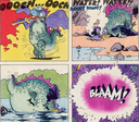 What started it for me was an old Polish legend about the dragon of Wawel Hill, wherein an evil dragon gets tricked into eating a fake sheep filled with sulphur, which makes him drink loads of water from the Vistula river until he blows up and explodes. Later exposure to various inflation scenes in cartoons cemented how it should look and feel.