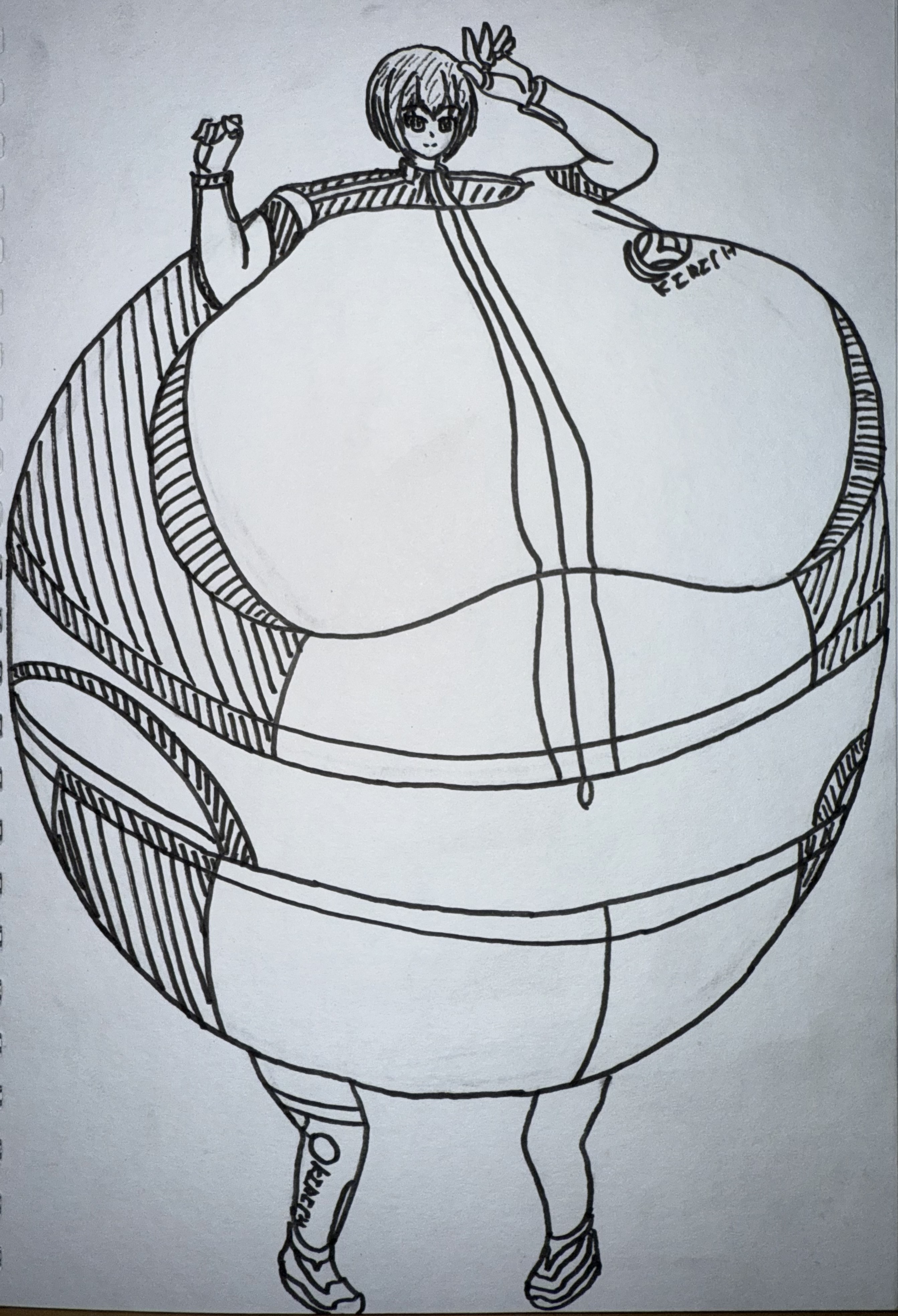 >>151077 Thought it'd be fun to give this a go. Sorry for the scuffness, I decided to use Paint as my program since it was mostly done for practice. Also this doesn't concern anyone but the entire time I was thinking about how much I want to be as inflated as the drawing