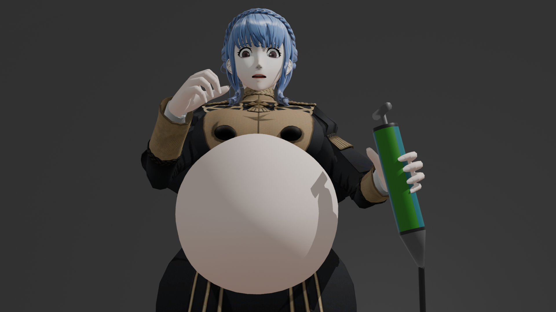 Beta kept insisting that Delta get on the bouncy castle, but they were too close to the television playing video games and the bouncy castle had deflated. Beta didn't stand idly by. Seeing how the air tank was working, she had a brilliant idea. She connected the wires to Delta's rear end, and her breasts and buttocks began to inflate. When Delta's breasts and buttocks reached a gigantic size (completely naked), Beta began to jump nonstop on Delta's breasts as they inflated. But when Delta was already inflating to an enormous size, Beta had no escape. Delta used magic to attract the air turbine and connected it to the air pump. It began to inflate her breasts and buttocks to a colossal size. It seemed that jumping in enclosed spaces like the party hall was no longer fun. To complete the inflation, the air tank and the energy for the air turbines also ran out, but Delta's breasts and buttocks inflated to the size of the inside of the hall, and Beta was trapped on the ceiling. Beta had the most uncomfortable experience she had ever had in her life, while Delta had a very fun experience that she would never forget.