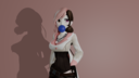 Out in the city at night, Emma takes off her jacket to test the capabilities of her new expansion suit and performs a megaevolution. However, nothing happens, and she's disappointed. After a while, her buttocks begin to swell, followed by her stomach and chest. Her stomach grows to the size of a balance ball, and her chest and buttocks grow similarly, before stopping. She touches her chest, stomach, and buttocks to check. She performs a megaevolution on herself and is satisfied with how she grows. Curious what would happen if she performed another megaevolution, she tries it on herself. Changes occur throughout her entire body, and the swollen parts expand explosively again. Her body rapidly expands into an blimp, expanding much larger and knocking over surrounding buildings before stopping. She considers the performance of her new expansion suit to be excellent.