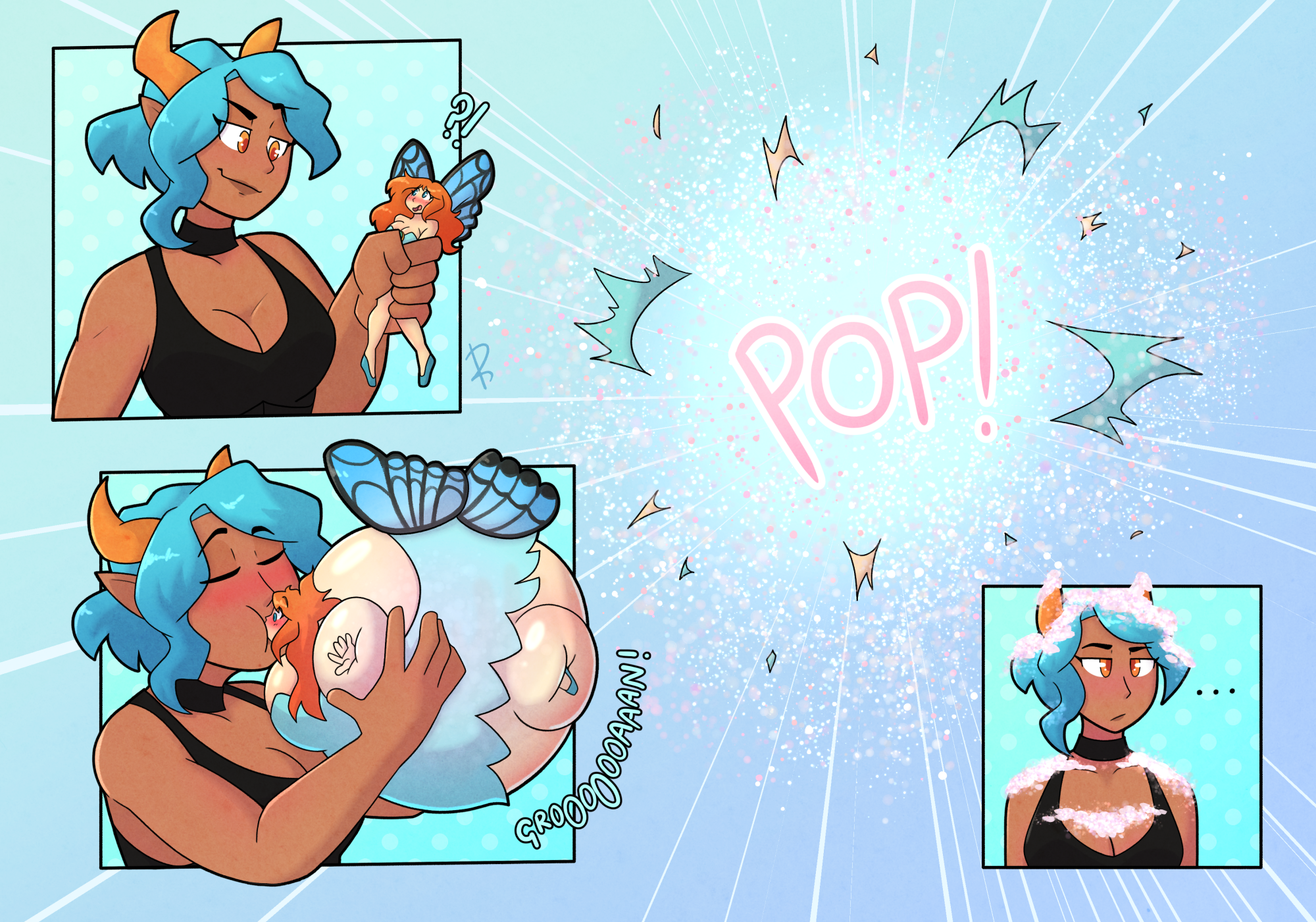 A thread for a not-often-celebrated but always hot kink: characters who expanded and shrank at the same time so they're portable full-body fun. Magic, air, blueberry, however they got big and small, it's probably gonna be fun.