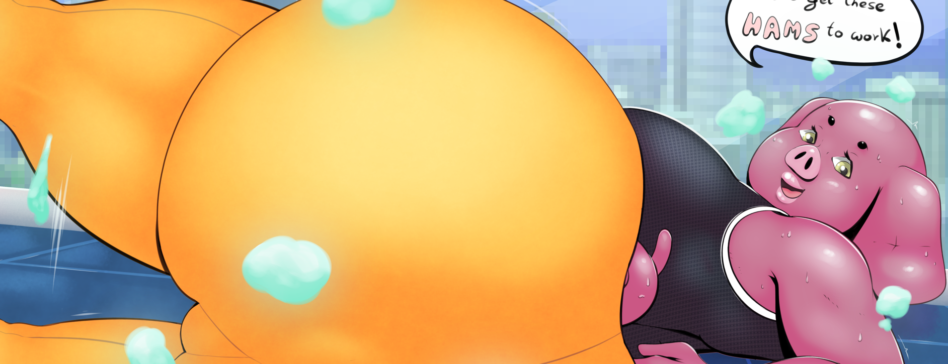been looking for the entire gallery from scottybelafonte, who drew inflation art of her oc (who was called diesel i think?) alongside some other ones, like a sequence of marge simpson inflating in her backyard and being implied to burst. diesel was the pig oc she used as her mascot on her profile, and the only details i can remember is her body being fairly short yet somewhat chubby, and her having fat lips. any type of artwork she made will help, and i remember her having a deviantart and newgrounds account, the latter having this piece of art as her banner. if you recognize this art style and have any images saved in a similar style, please send them