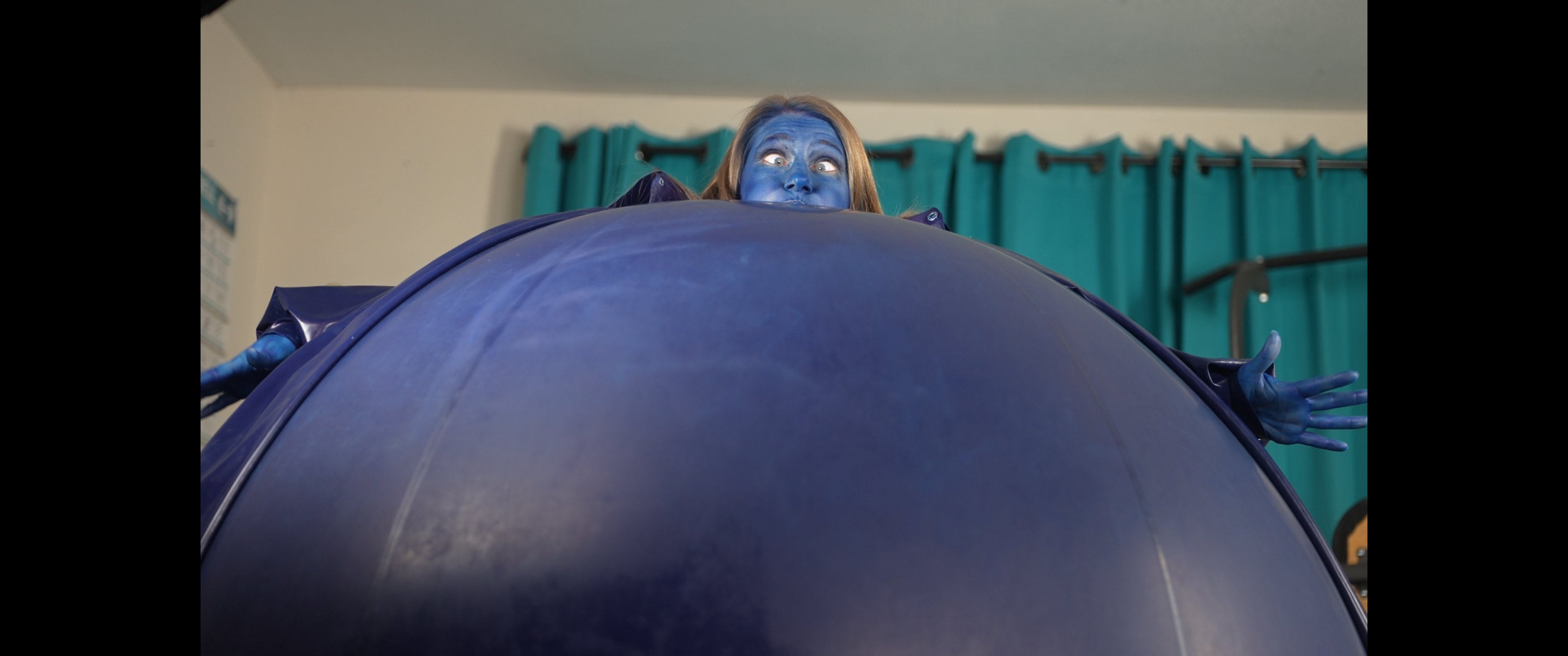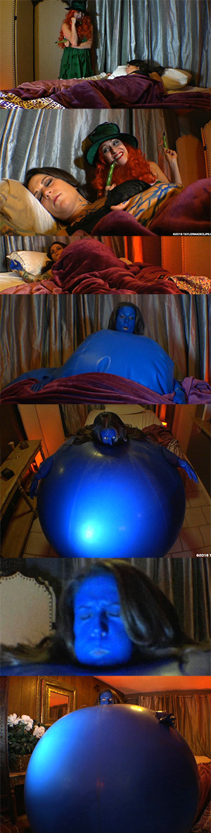 Fae has been having nightmares recently.They had been occurring every night and they have been the same, a burned man in a striped jumper and a clawed glove, and he keeps taunting Fae with balloons. Fae has a fear of balloons, especially when they pop. It sounds impossible, but Fae is convinced that in some way these nightmares are real. Fae has told her mother about this, but she laughed it off. Hesitantly, Fae goes to sleep, and when she does she enters another nightmare. Fae is in her bedroom, or what looks like her bedroom, and she's waiting for the burned man to appear, but while she waits, she begins to feel a strange pressure build up in her belly. Not only that, but she can also feel her skin stretching as if it were latex. Fae panics and realizes she's blowing up like a giant balloon. In the real world, Fae is asleep, but also inflating just like in her dream. Fae is freaking out as her clothes cannot contain her ballooning body, tearing off of her piece by piece, even her shoes bust off her swelling feet. In the real world, Fae has bust out of her pyjamas and her bed covers are raising as high as her body is swelling. In the nightmare, Fae is almost fully round but still inflating, it seems like there will be no end. But then, the burned man (POV) appears in front of her. He reveals his clawed glove and starts taunting Fae, threatening to poke her, stroking his blades carefully against her taut belly, to the point where Fae is so terrified she starts crying. In the real world, Fae is swollen to the max, and visibly sweating.