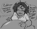 >But you did have one 'lucky' break, the contant gas flowing into you had finally stopped, the tank must have run empty, leaving you a massive pear shaped balloom of a guy on the ceiling, entirely unable to move and struggling to do more than hump at the air and moan. At least for as long as this lasted~