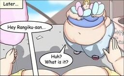 >Your mind was starting to cloud with bliss, so it was hard to notice your gut suprassing any size a woman's pregnancy could reach, looking more like a rapidly expanding beachball.