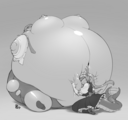 Does someone have the image of Centorea from monster musume being inflated by sui because is in her stomach and Mia laughing at the event?