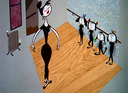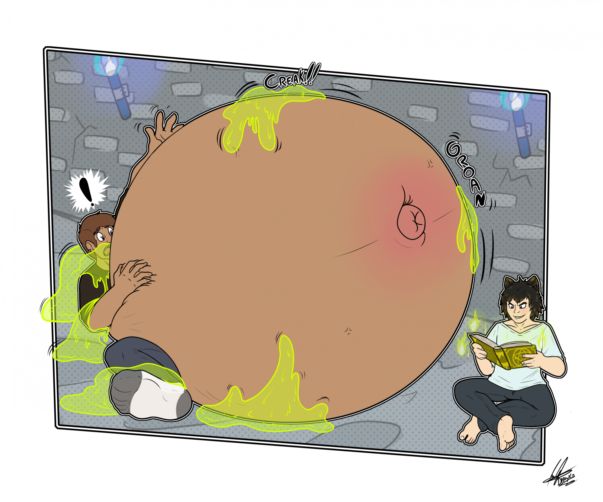 She tries to scream, but her screams are muffled by her bloated cheeks and lips.