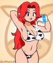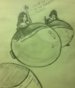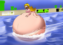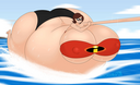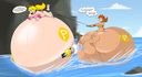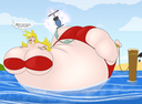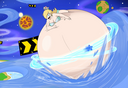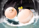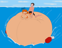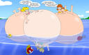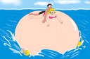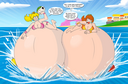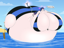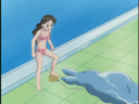 Yukari finally spits the hose out and deflates in a hilarious manner, while colliding with Tomo with her (deflating bum) and both landing on the pool.
