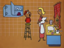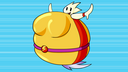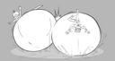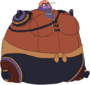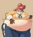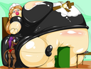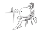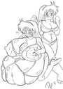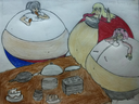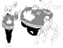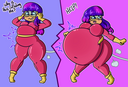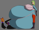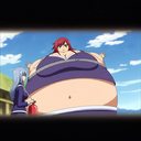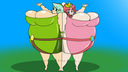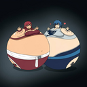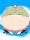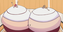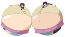 Tomo bursts into laughs while Osaka points her finger at the bloated Yukari and saying the following: