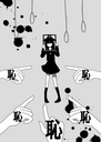 Shortly after, Yukari recovers and snaps out of the phase, only to find out that she's floating a few centimetres from the ground, her limbs are sinking into her body and her eyes bulged out and now sees things like if she had fish lens on.